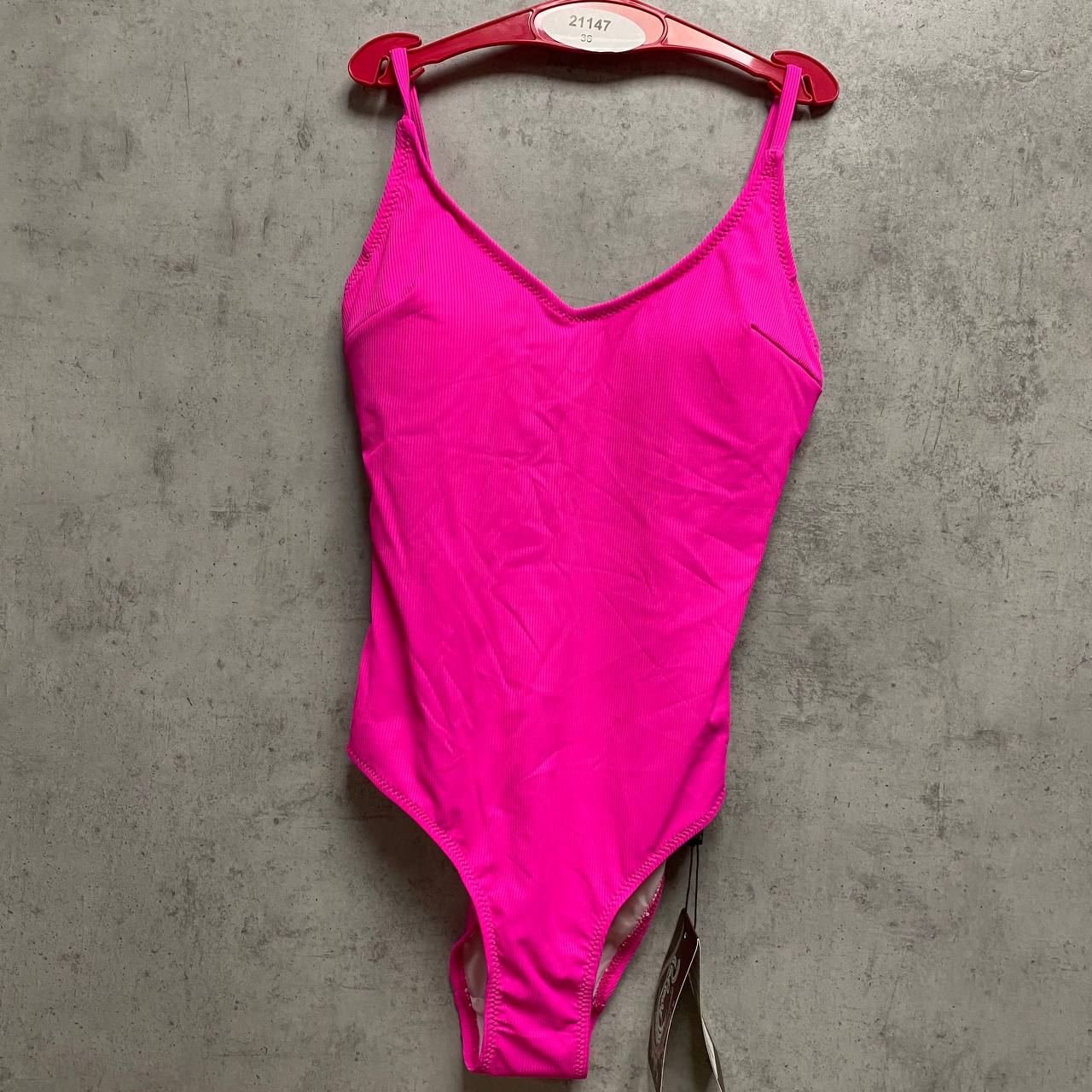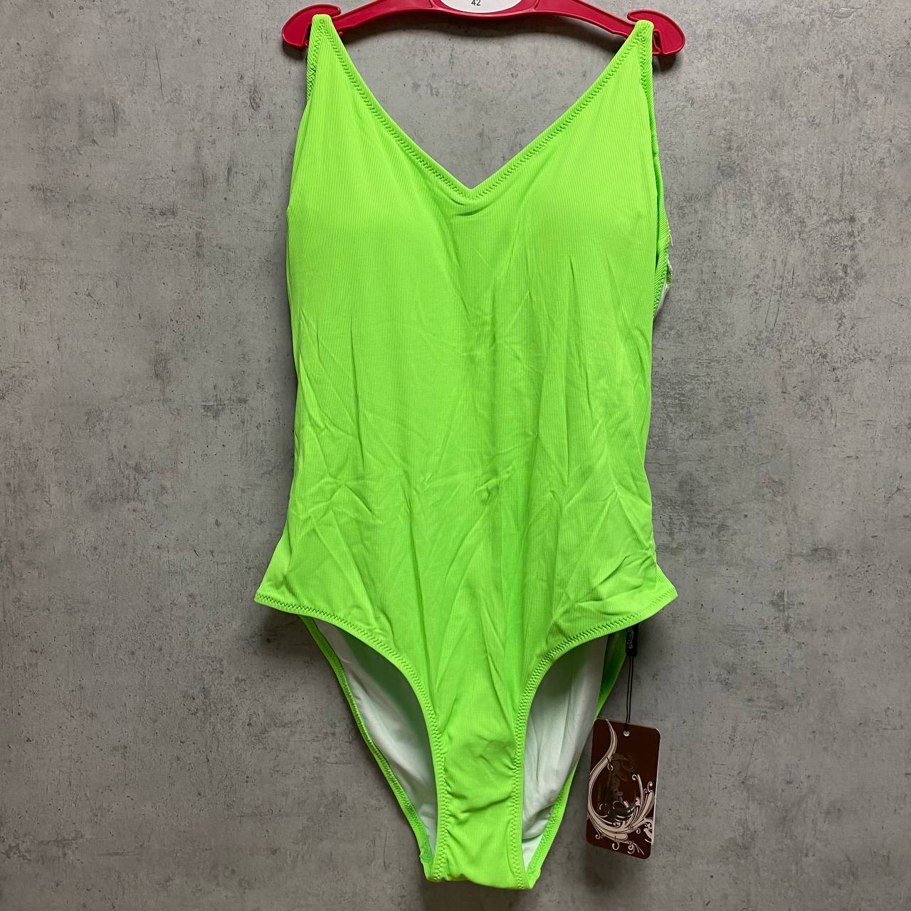 Слитный купальник с регулируемыми бретелями, есть вкладыши.