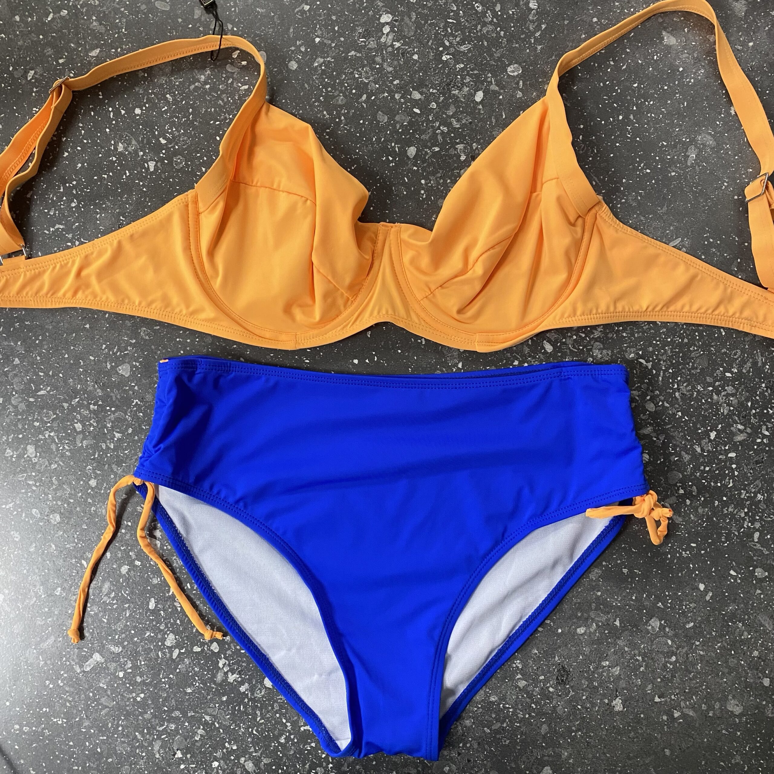 Раздельный купальник. Верх мягкая чашка на косточке, регулируемые бретели, застёжка на спинке. Низ завышенная талия на завязках.