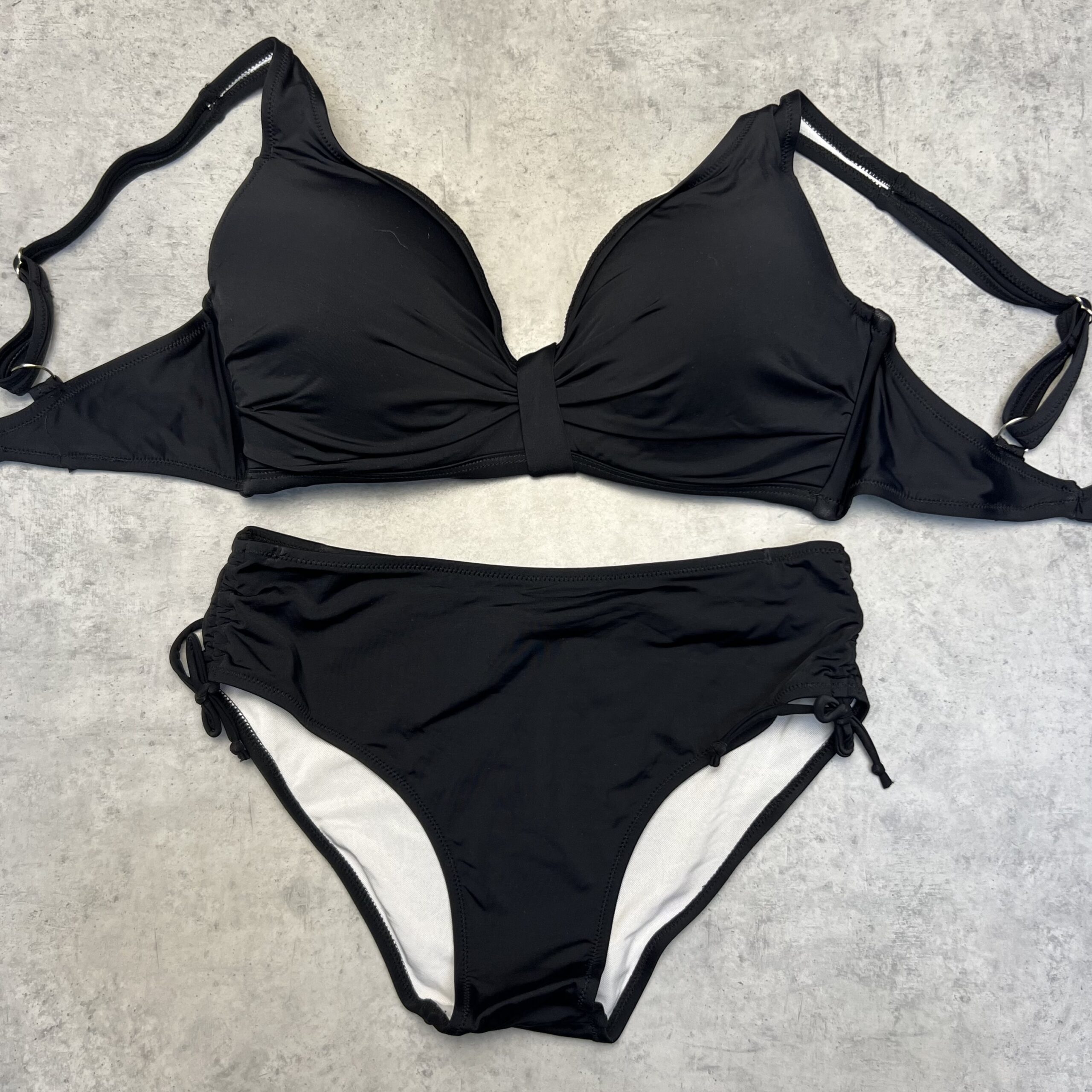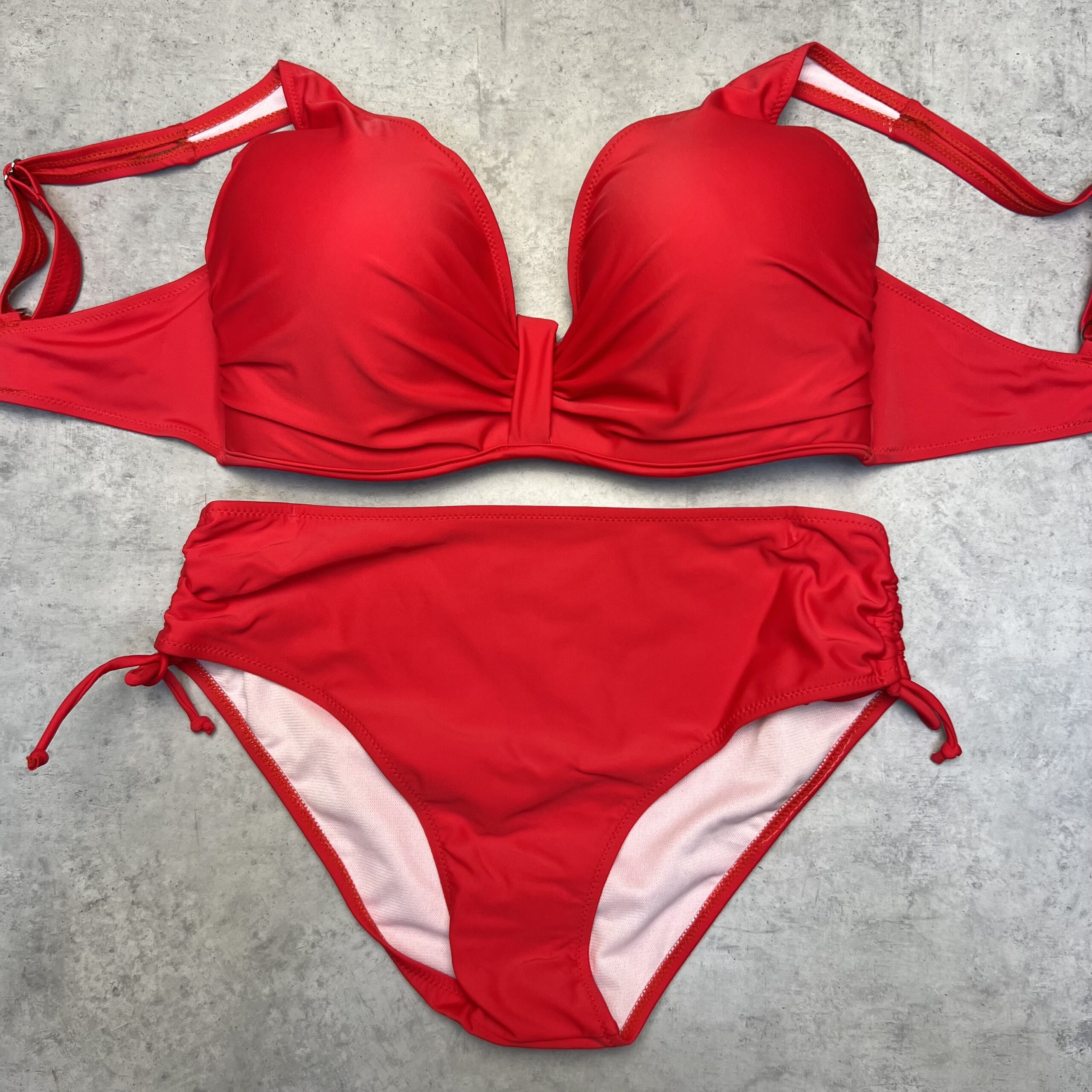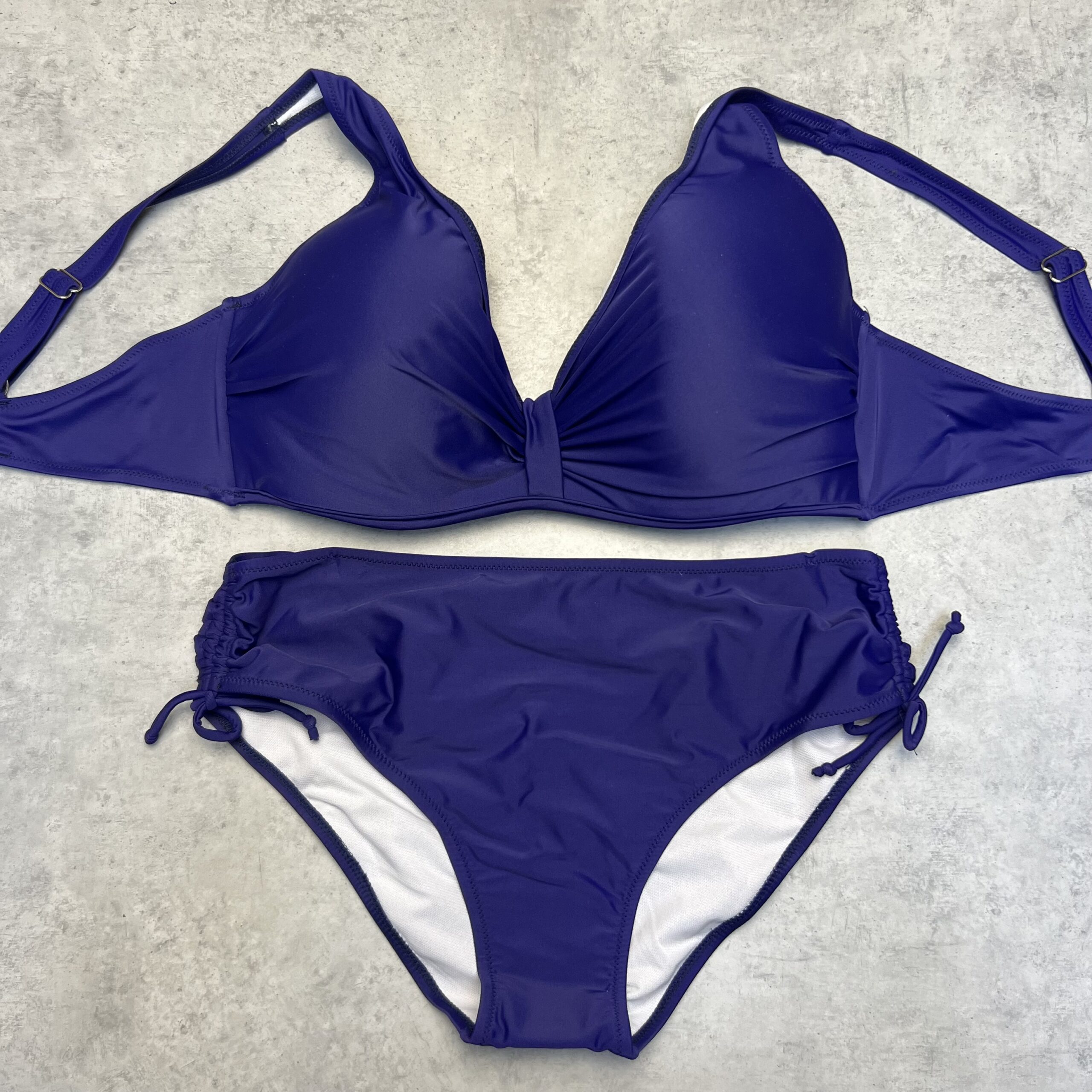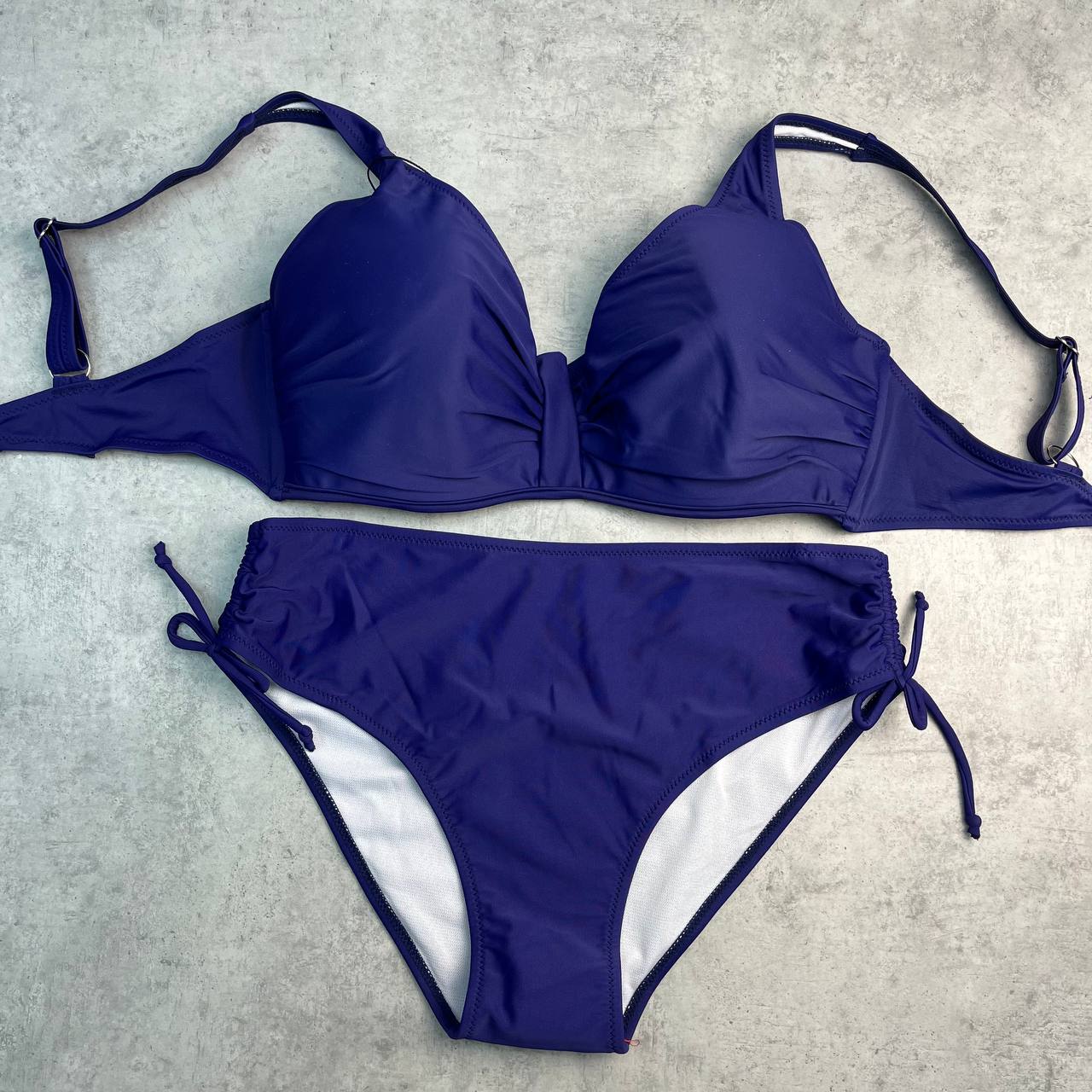 Раздельный купальник. Верх плотная чашка на косточке, бретели регулируются, на спинке завязка. Низ завышенные плавки с регулировкой по бокам.