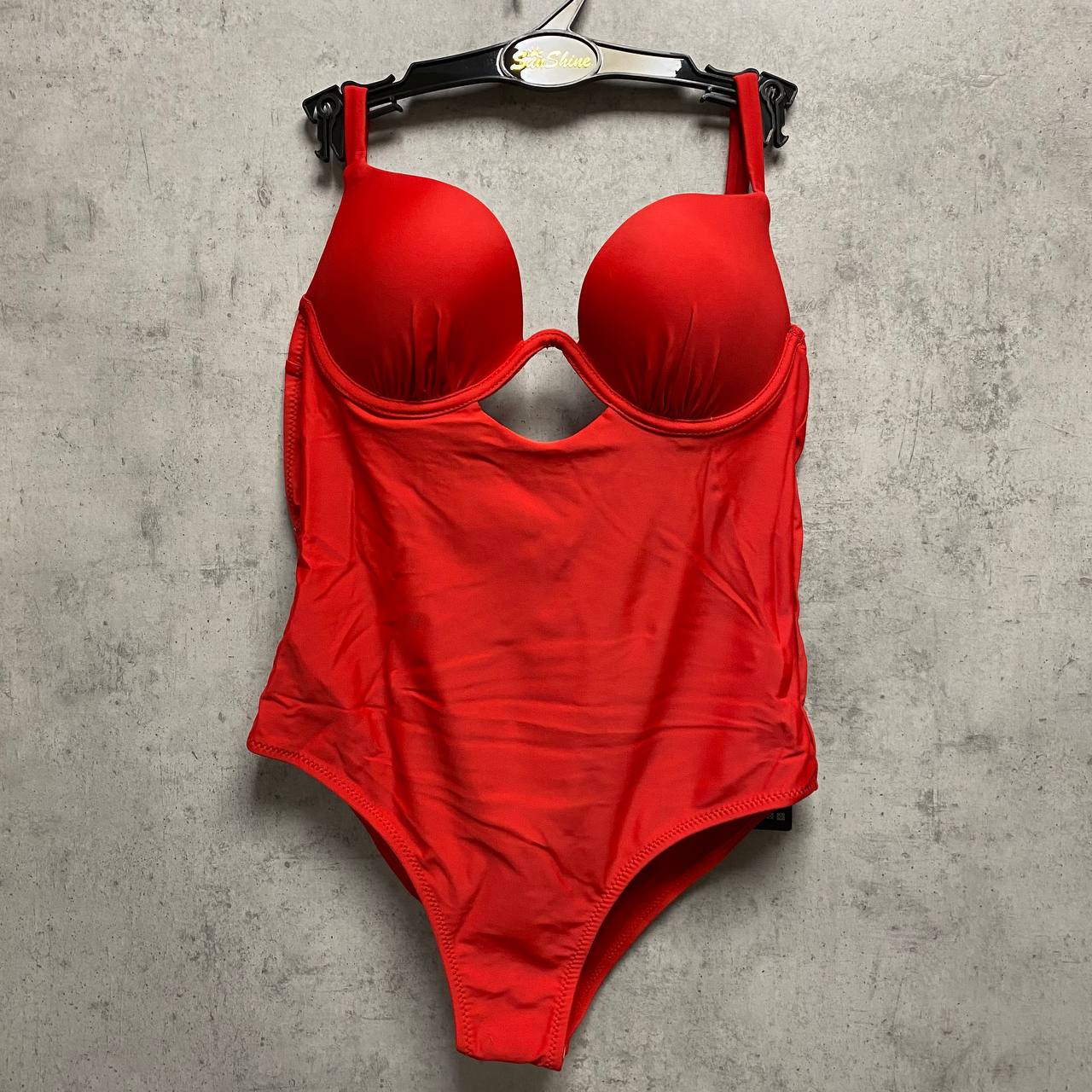 Слитный купальник с чашкой на косточке, регулируемые бретели, застежка на спинке.