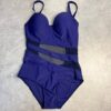Слитный купальник с плотной чашкой, на животе декоративные вставки из сетки, бретели регулируются, на спинке застёжка.