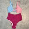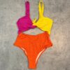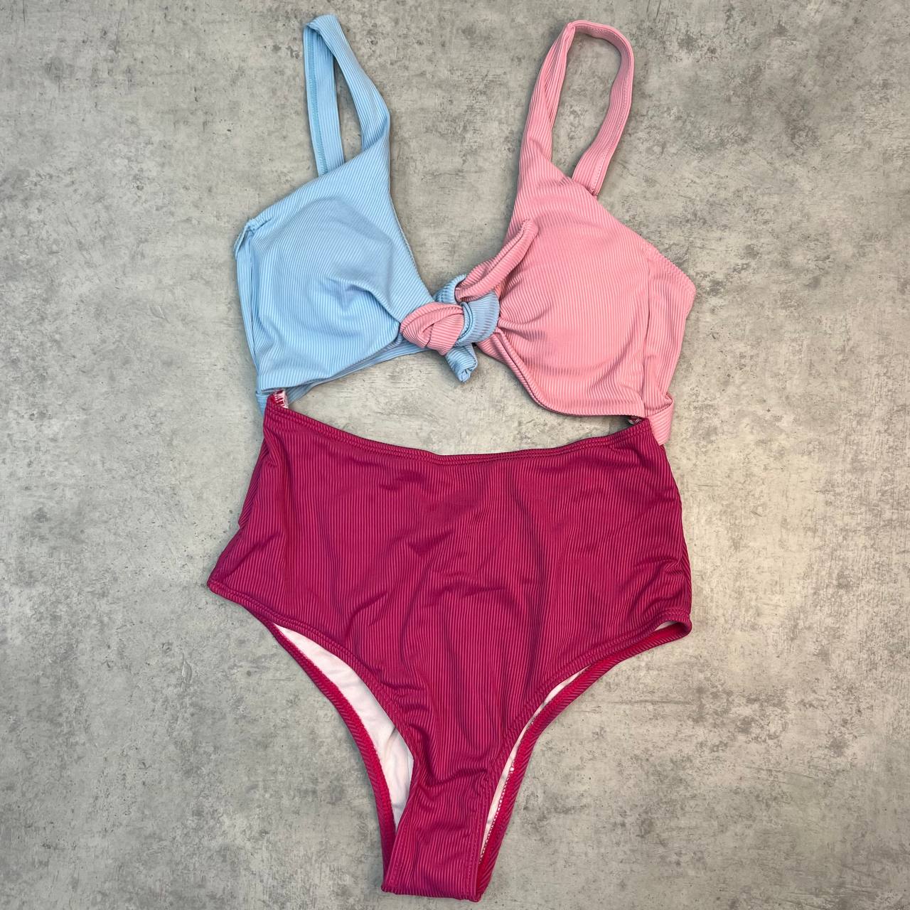 Слитный купальник на регулируемых бретелях, на спинке застёжка, есть вкладыши.