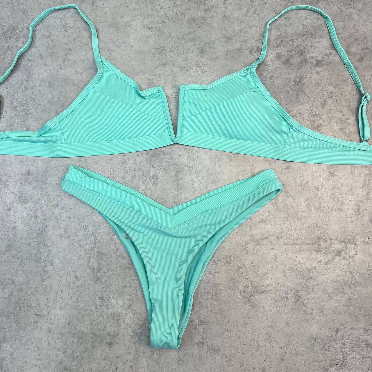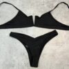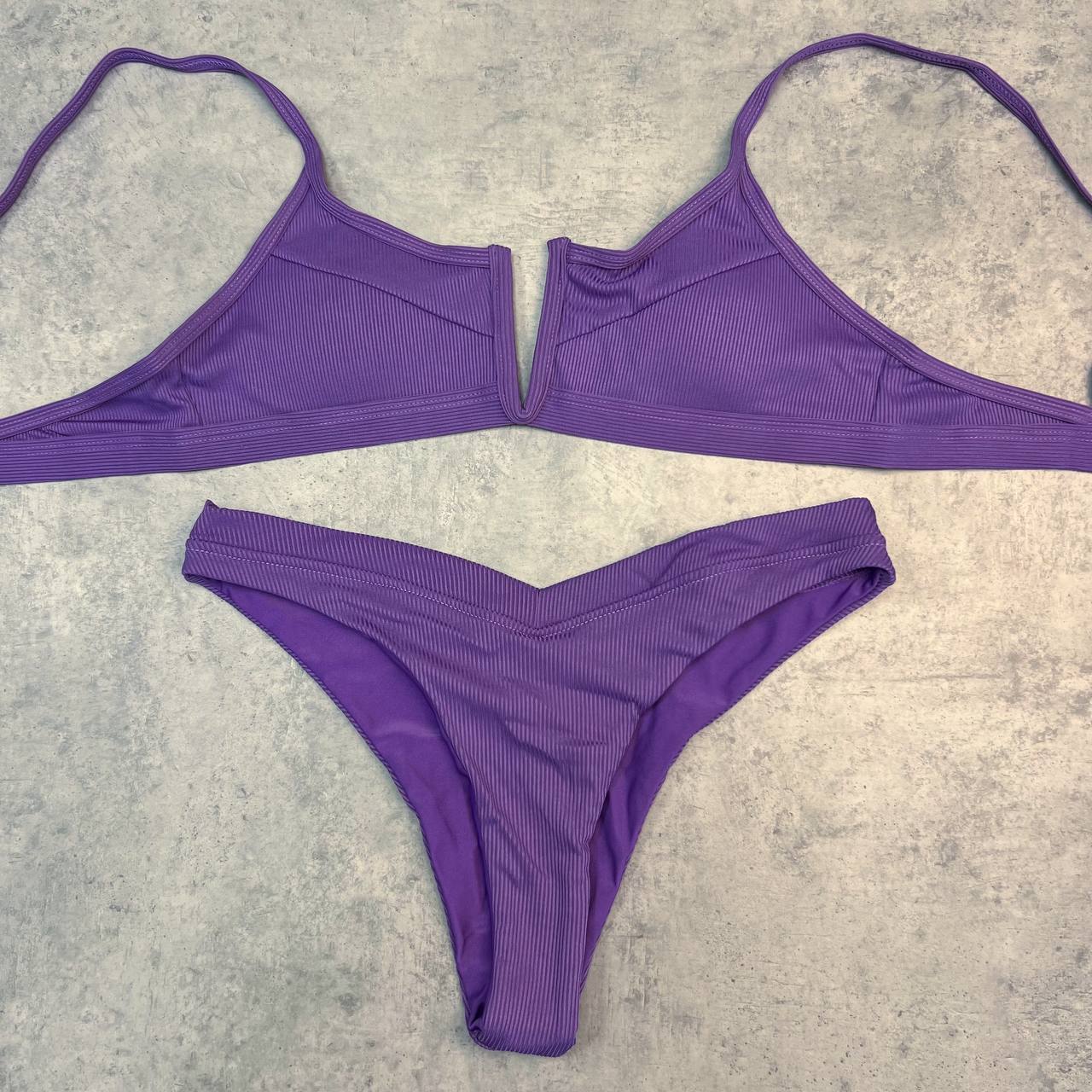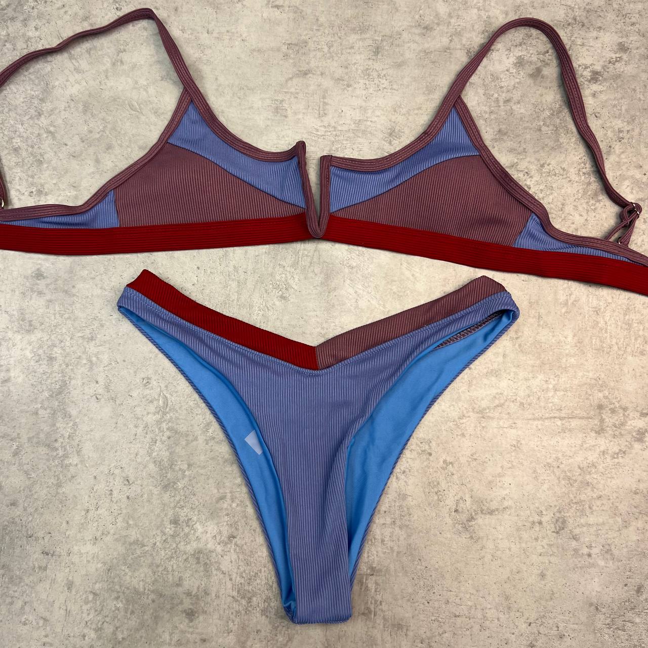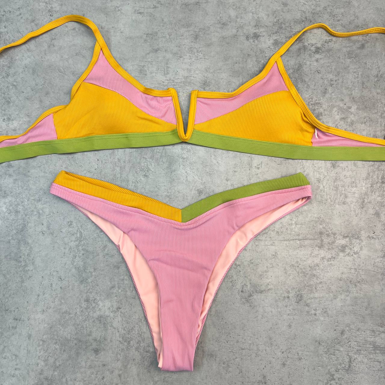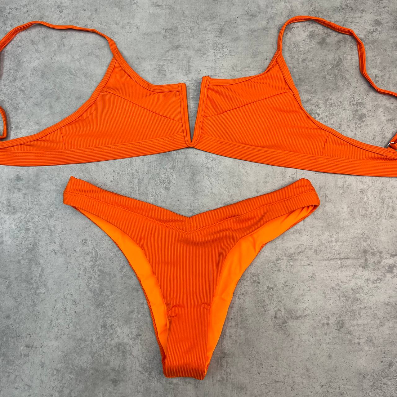 Раздельный купальник. Верх топ на регулируемых бретелях и застёжкой на спинке, есть вкладыши. Низ бикини.