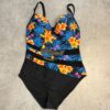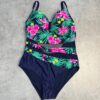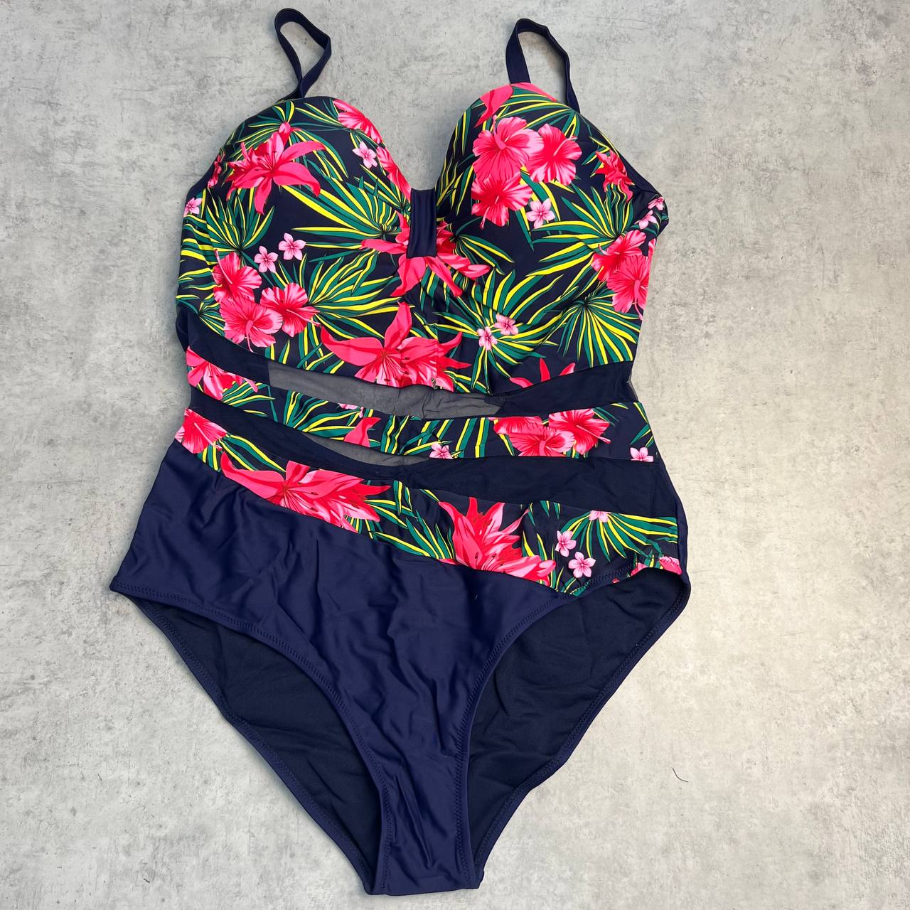 Слитный купальник с плотной чашкой, бретели регулируются, на спинке застёжка, на животе декоративная вставка из сетки.