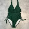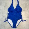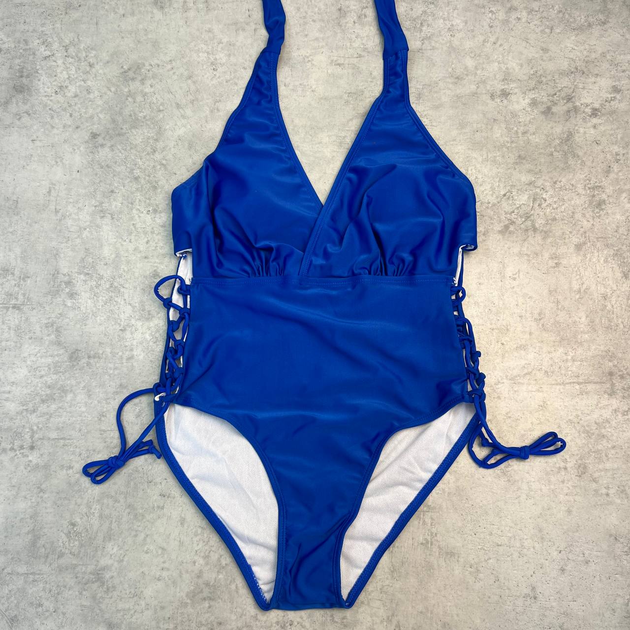 Слитный купальник со шнуровкой по бокам, на шее завязка, есть вкладыши.