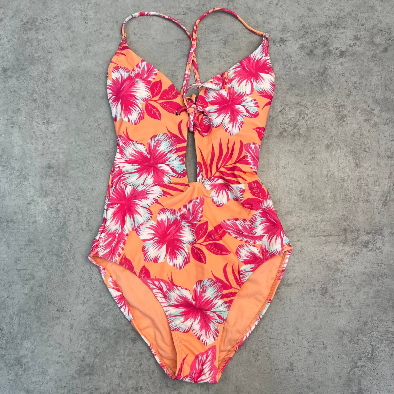 Слитный купальник на регулируемых бретелях, спереди завязка, есть вкладыши.
