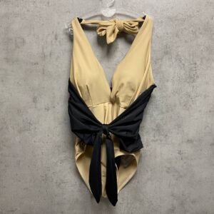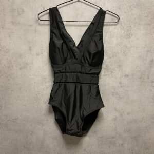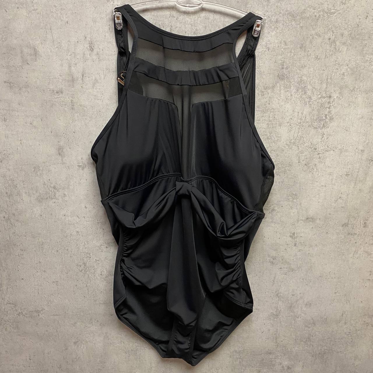 Купальник слитный с декоративной сеткой на груди, с застёжкой на шее, есть вкладыши.
