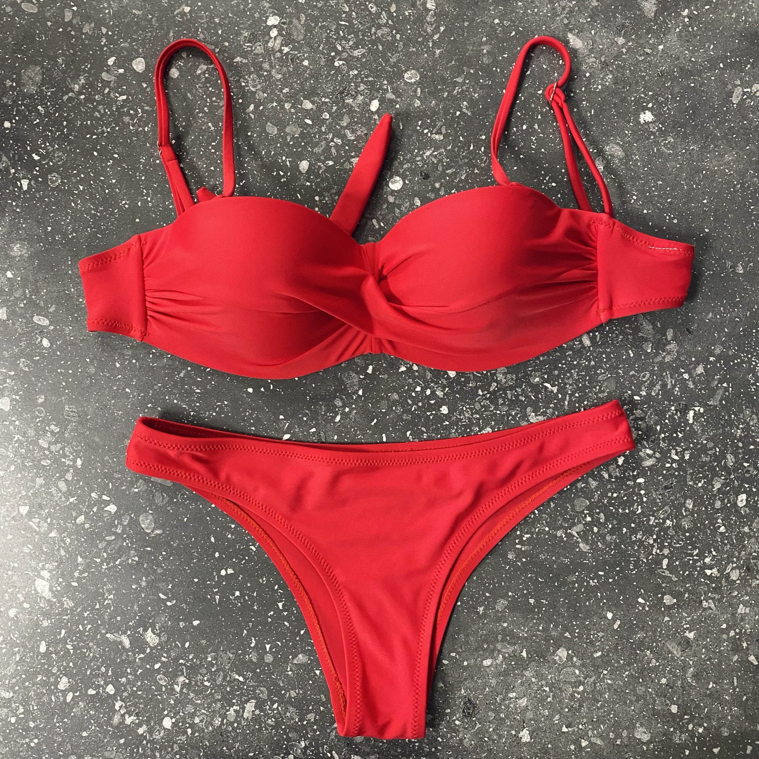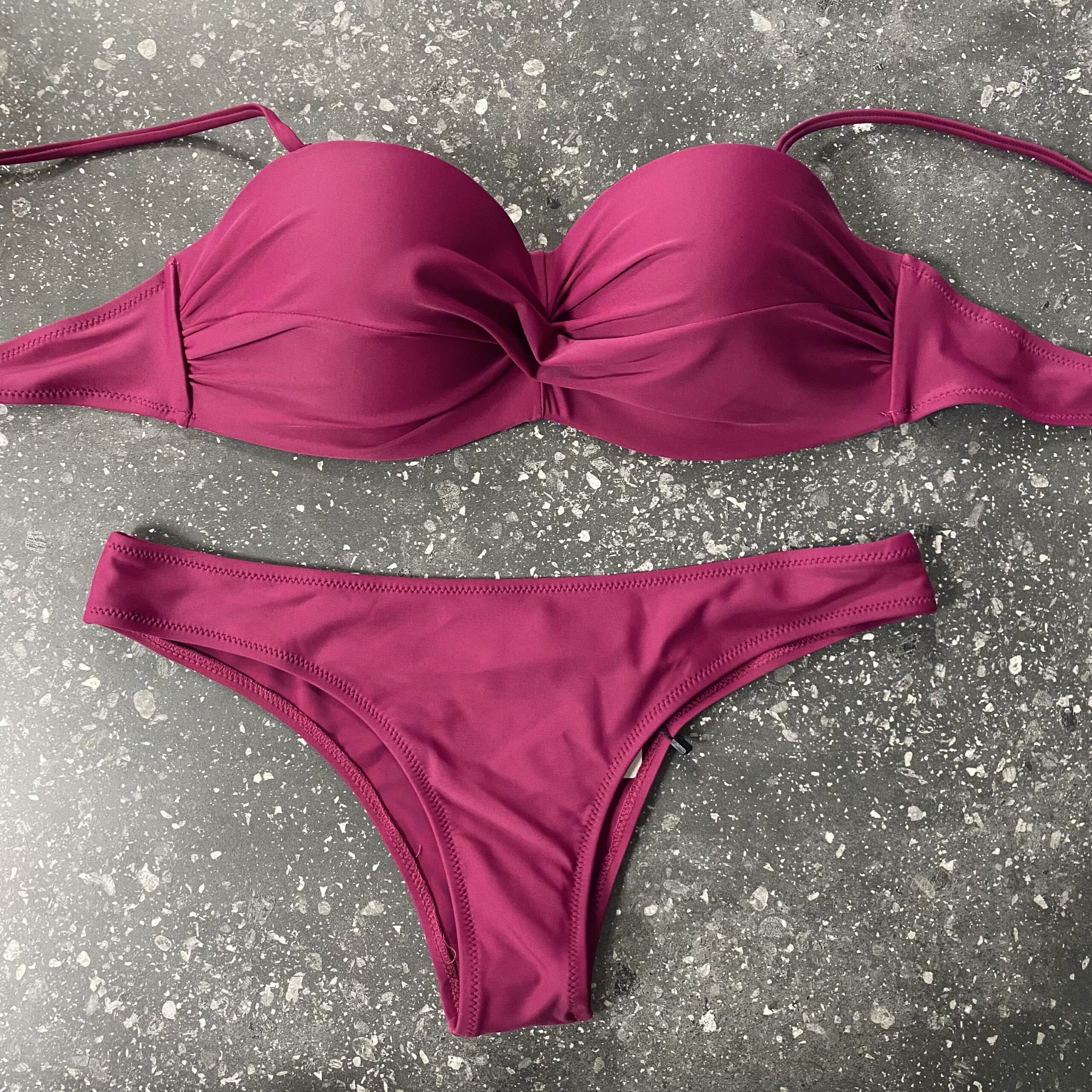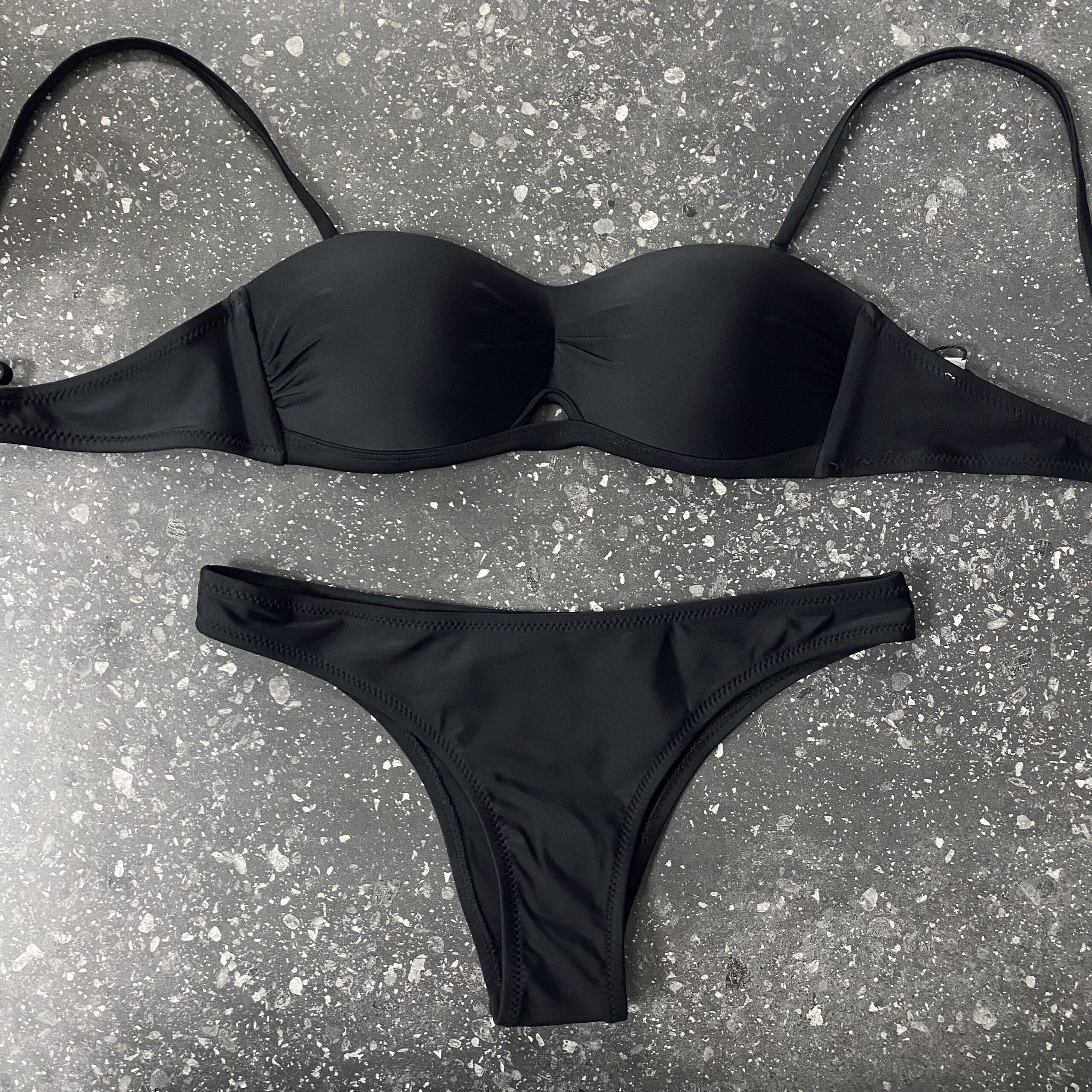 Раздельный купальник. Верх плотная чашка, регулируемые классические бретели, завязывается на спинке. Низ бикини.