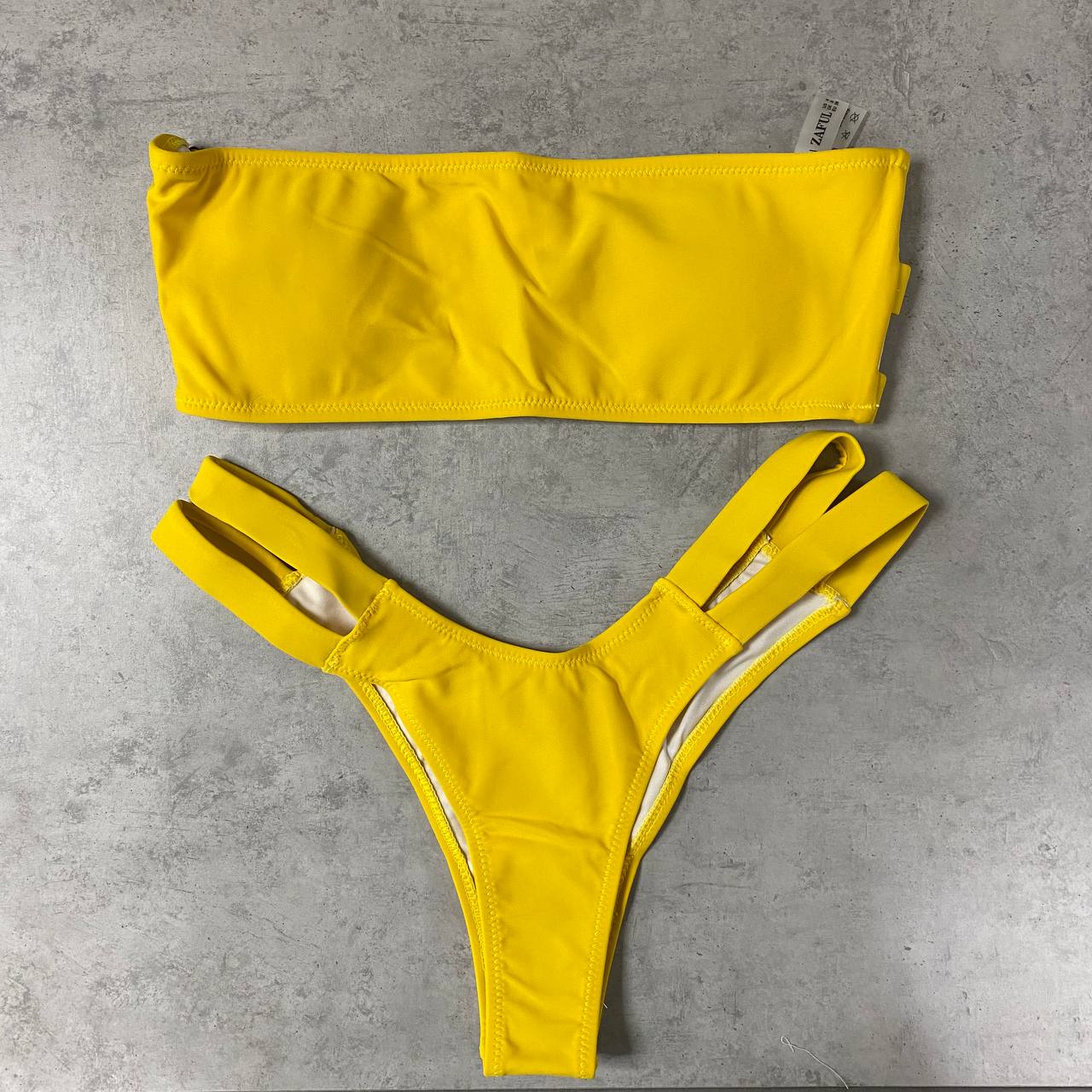 Раздельный купальник. Верх бандо, есть вкладыши. Низ бикини.