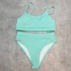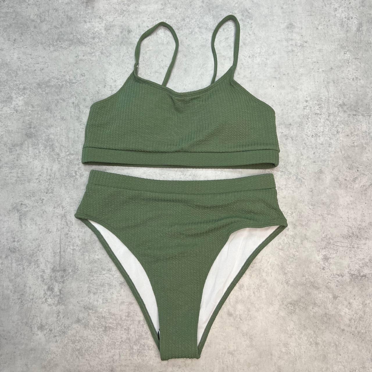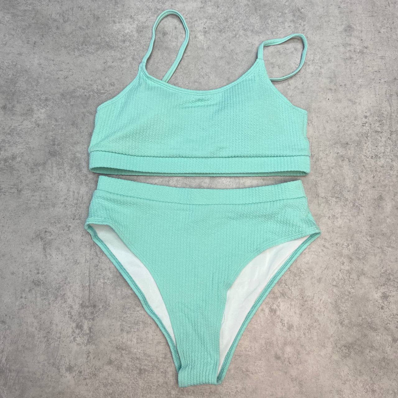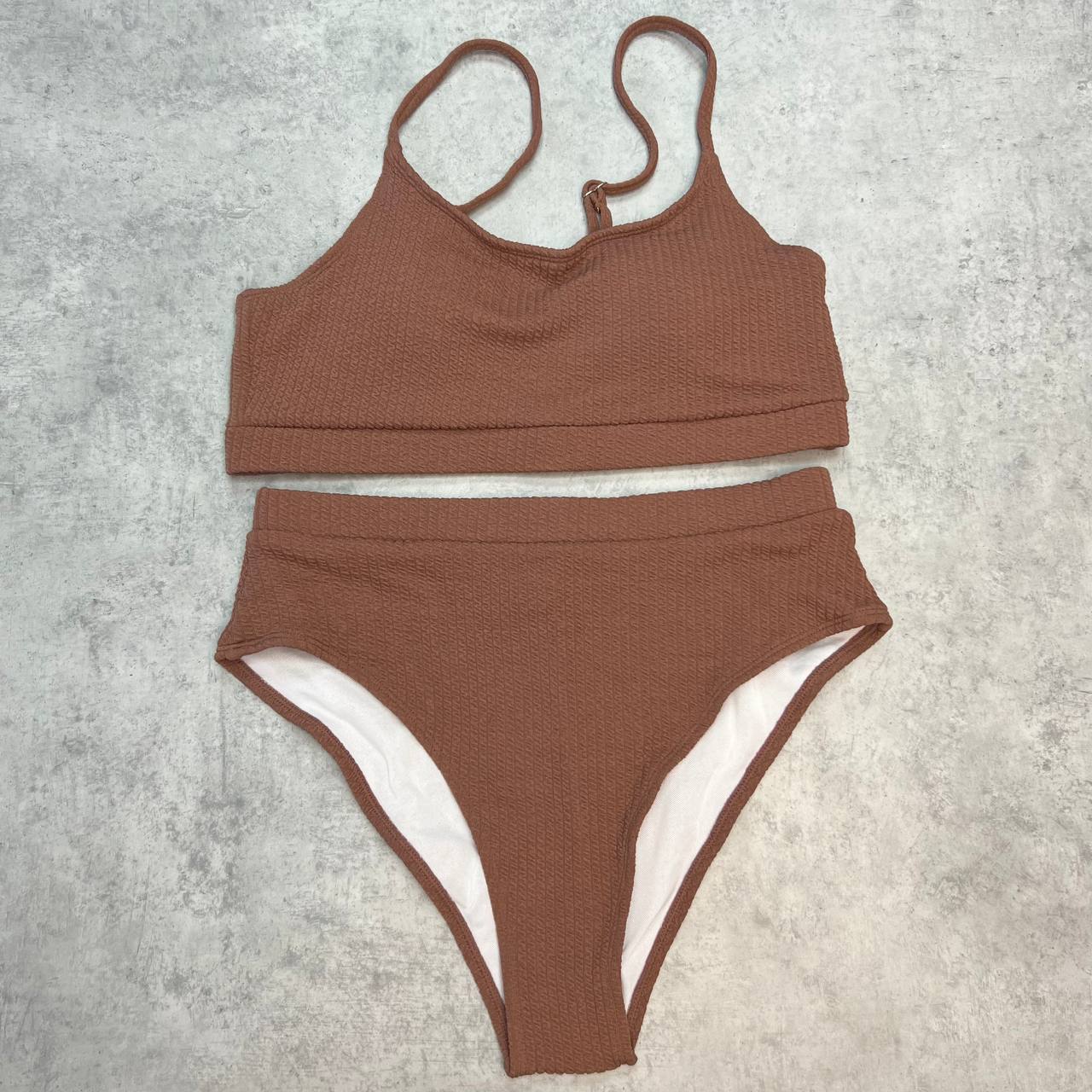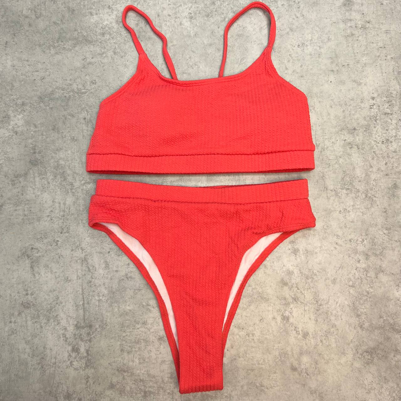 Раздельный купальник. Верх топ на регулируемых бретелях, есть вкладыши. Низ завышенные бикини.