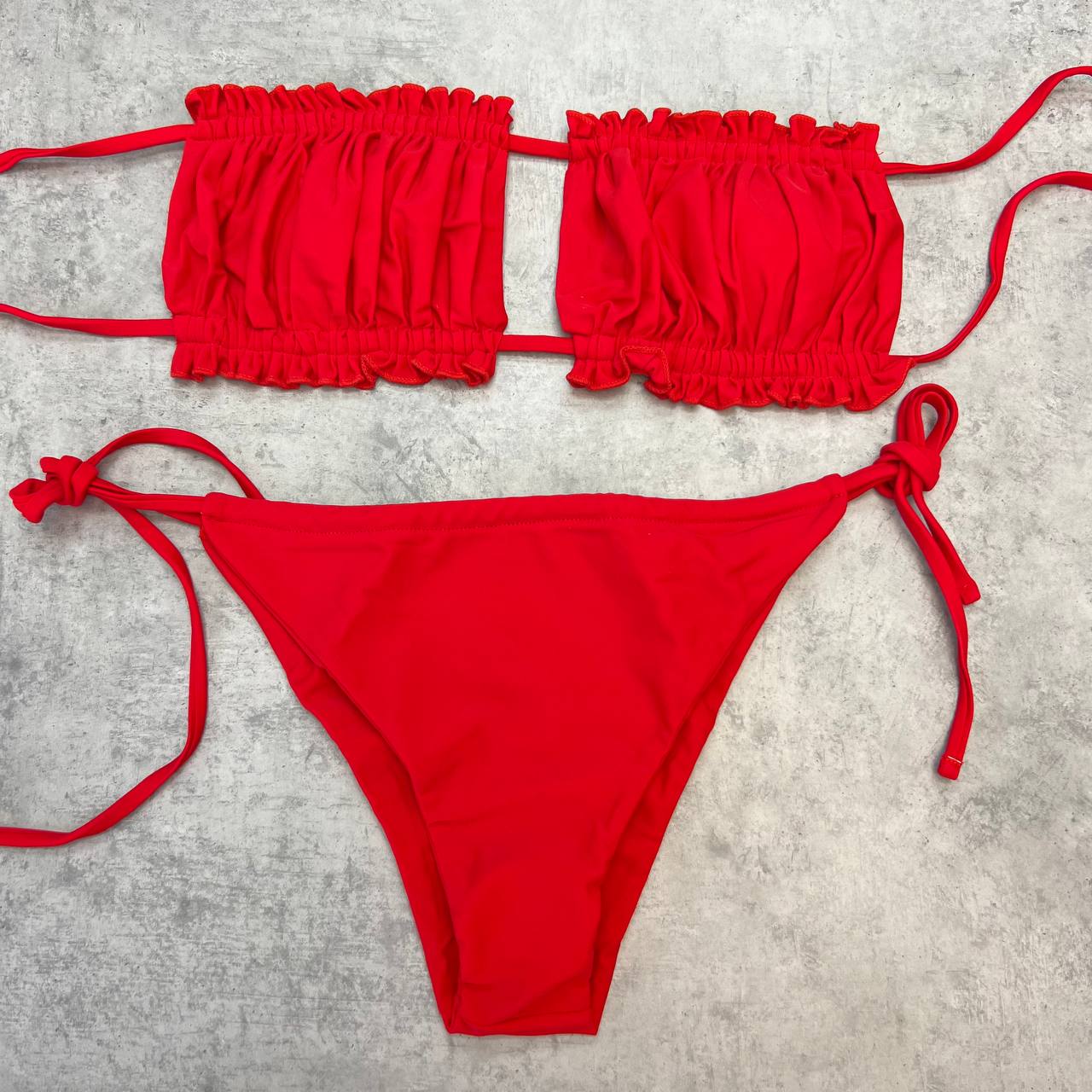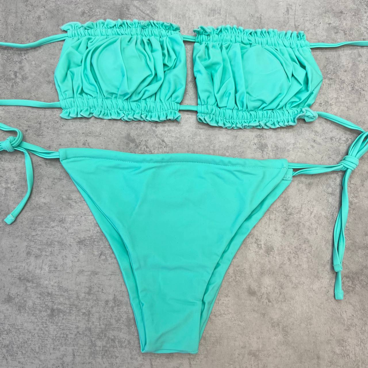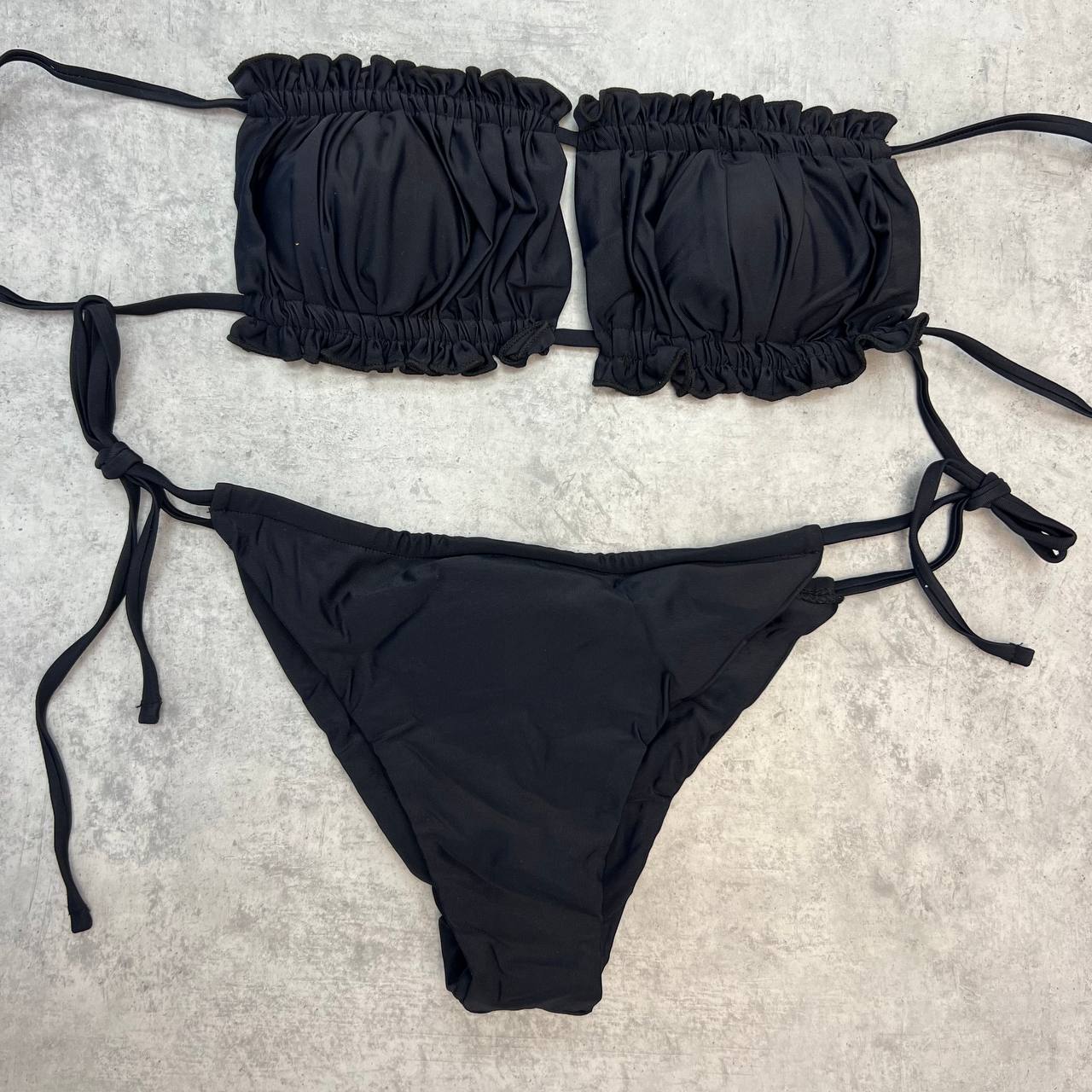 Раздельный купальник. Верх бандо с завязками на спине. Низ бикини с завязками на боках