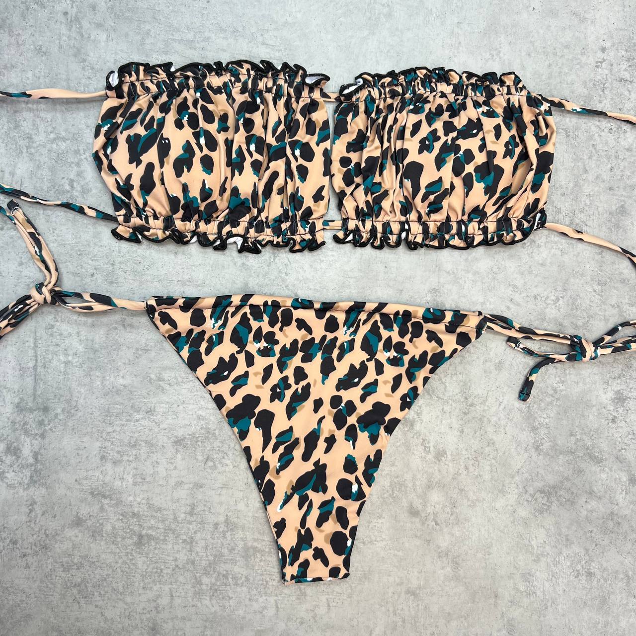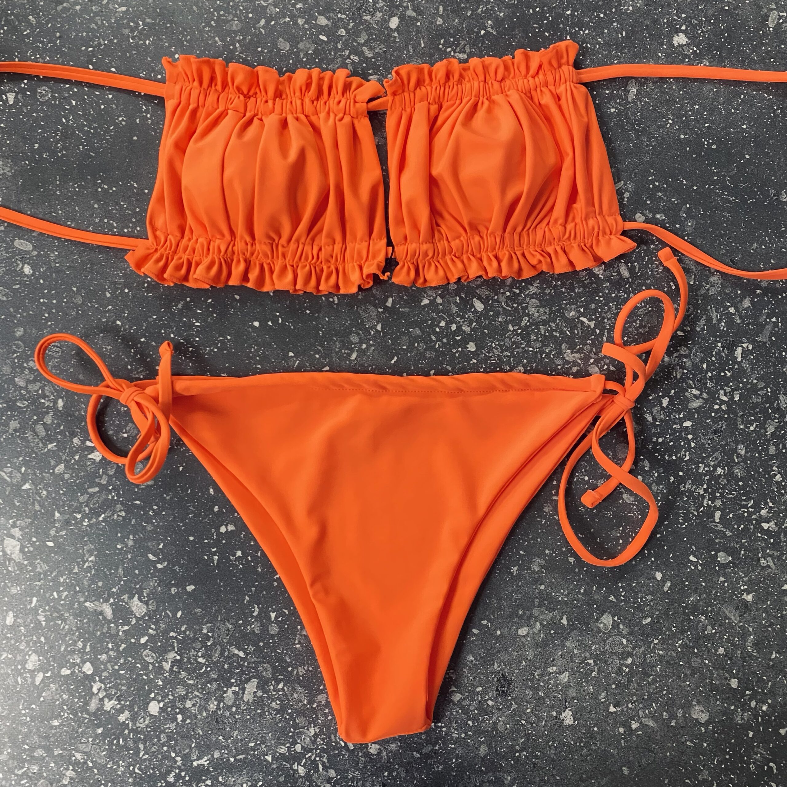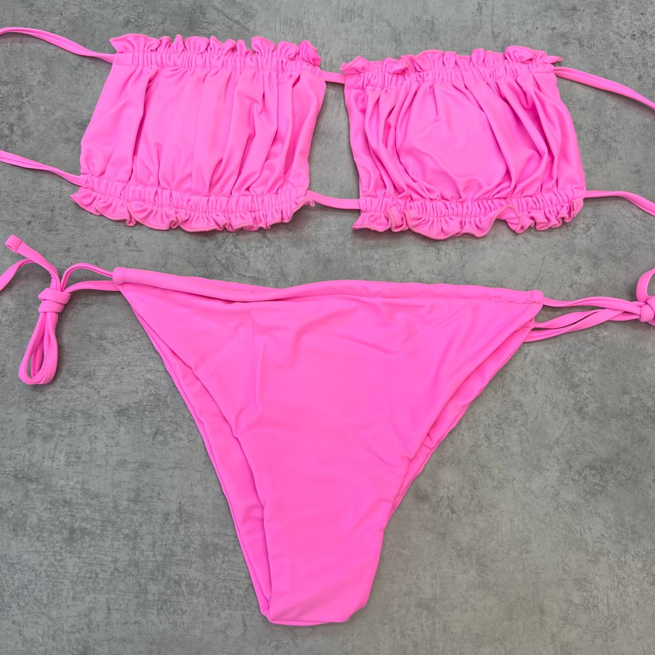 Раздельный купальник. Верх бандо с завязками на спине. Низ бикини с завязками на боках