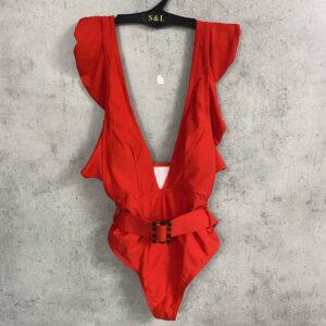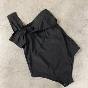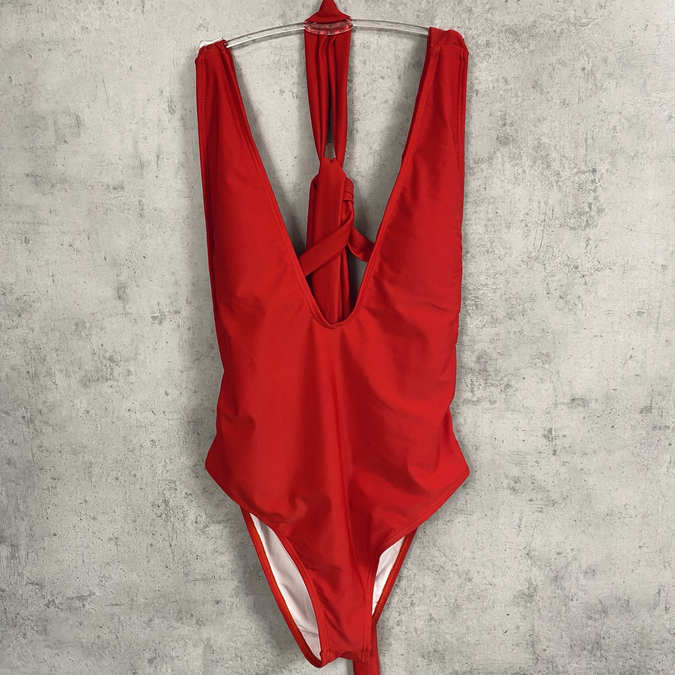 Слитный купальник, глубокий вырез на груди, бретели обвязываются вокруг тела, открытая спинка, есть вкладыши.