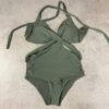 Слитный купальник с разрезами по бокам, открытая спинка, засязывается на спине, есть вкладыши.
