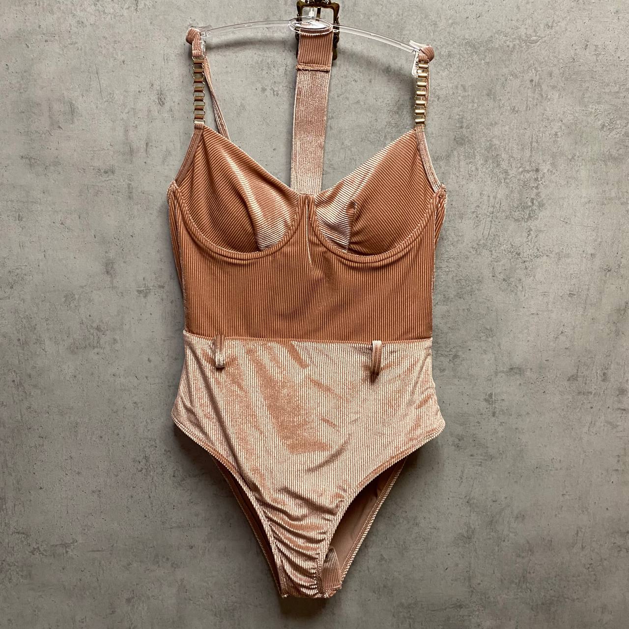 Слитный купальник с поясом, бретели регулируются, есть вкладыши