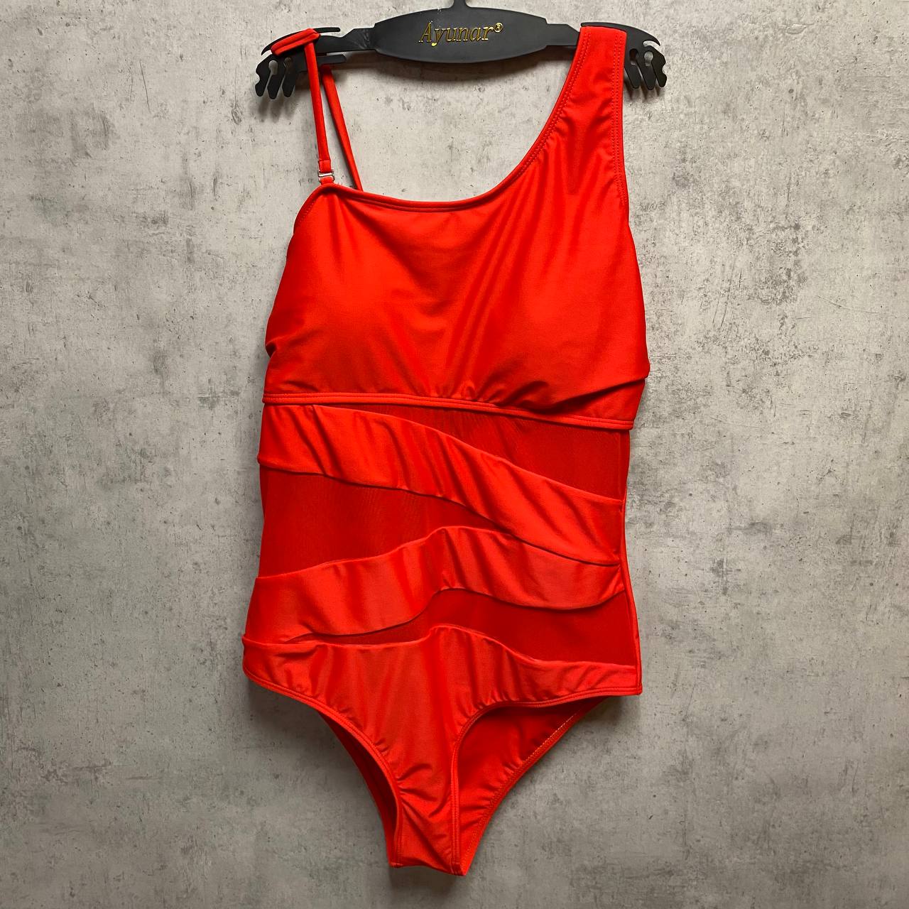 Слитный купальник на одно плечо, бретель регулируется, есть вкладыши