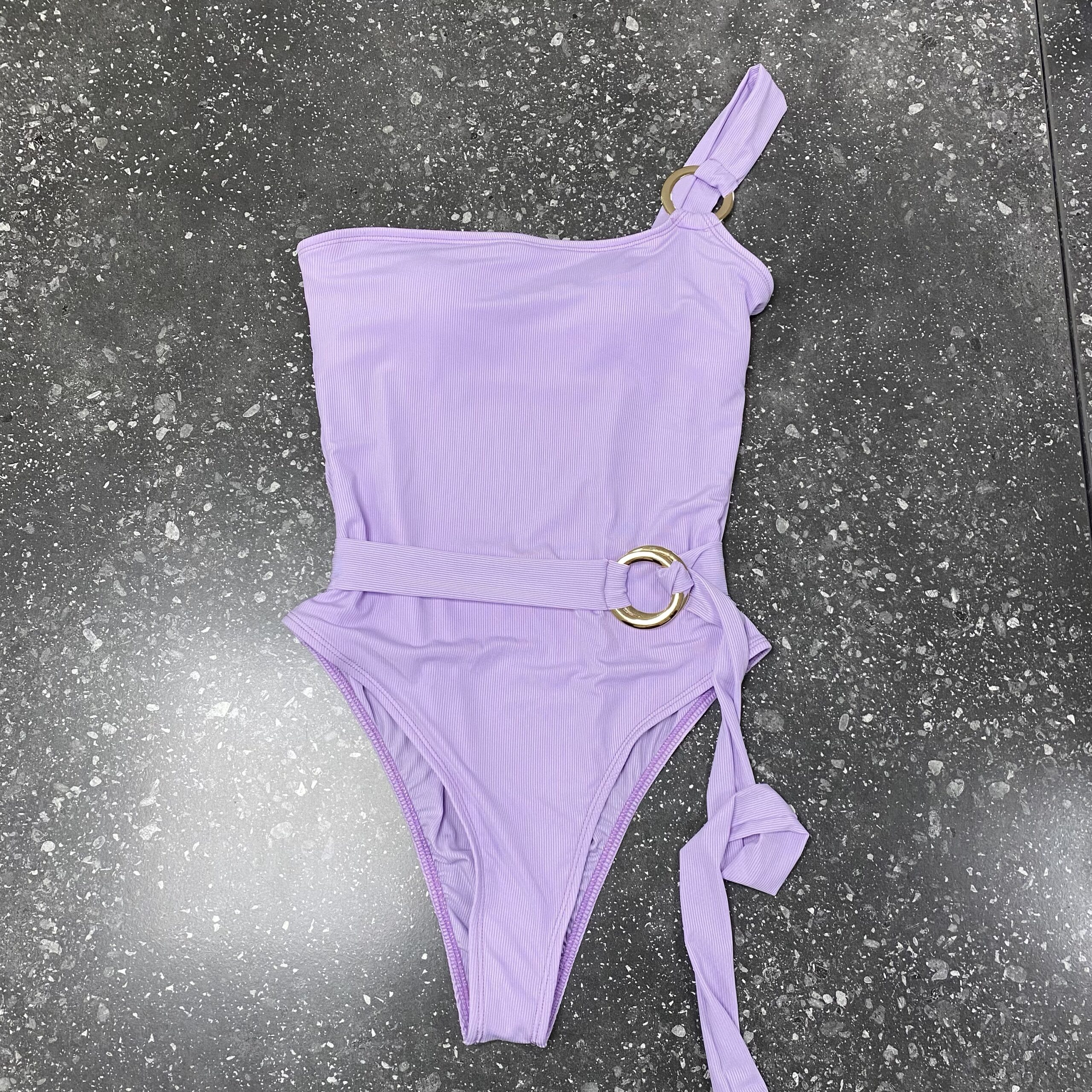 Слитный купальник на одно плечо с отстёгивающимся декоративным ремешком подчёркивающим талию, классическая бретель, есть вкладыши.