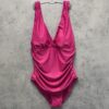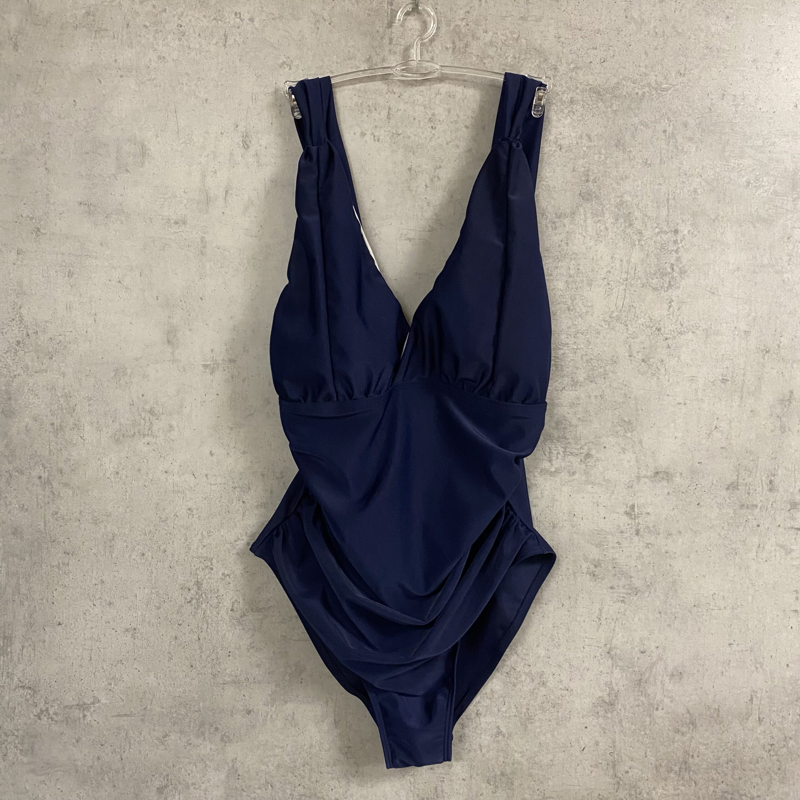 Слитный купальник с драпировкой спереди, есть вкладыши.